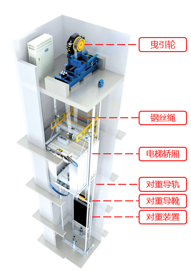 电梯对重使电梯系统保持平衡:一边是轿厢,另一边是对重,当轿厢及其额定重量的40%~50%的和与对重相平衡时,则符合规定标准。