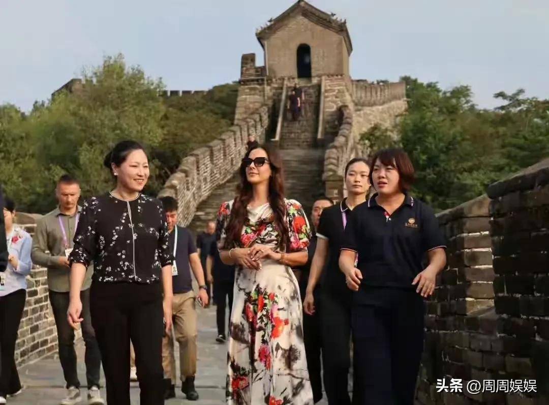 当天上午,塔玛拉夫人身着一条设计独特的火红色印花连衣裙亮相居庸关长城。这条裙装采用丝绸面料,裙摆处精心设计的牡丹花纹与古老的城墙青砖形成鲜明而和谐的视觉对比。44岁的她保持着令人惊叹的体态,纤细的腰和挺拔的身姿完全不输年轻女性,这源于她多年来坚持每周三次的普拉提训练和严格的饮食管理。