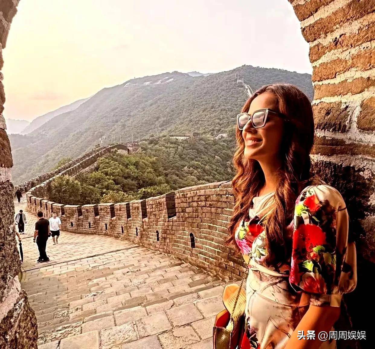 武契奇夫人爬长城拍了超多美照超开心印花裙一穿惊艳众人