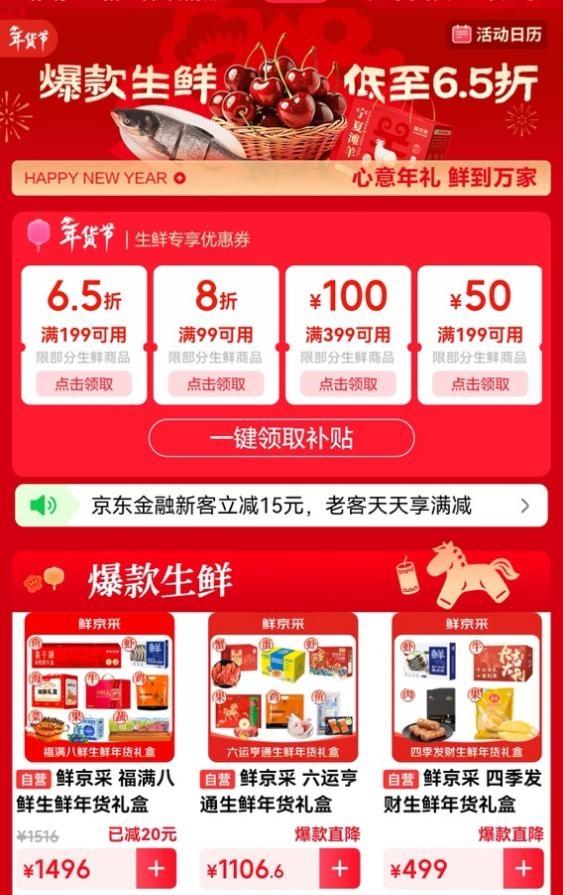 为满足消费者对年货赠礼的需求,2月4日,京东生鲜推出送礼惊喜日活动,围绕“心意年礼、鲜到万家”的主题,带来多重惊喜优惠。活动期间,消费者可享“满99打8折,满199打6.5折”福利,爆款生鲜低至6.5折;2月5日晚八点至2月6日,优惠力度持续加码,满199直接打5.5折,爆款生鲜同步低至5.5折。不仅如此,还有千元生鲜年货大礼包抽奖活动,以及1元拍巨型帝王蟹、5J车厘子、伊比利亚5J黑标火腿等超大生鲜,一站式满足消费者春节送礼场景,让高品质生鲜直达千家万户。