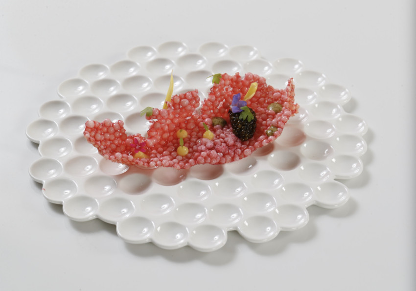 又比如大家熟悉的鹅肝,它常见的做法是煎、烤等,但我打破常规,将其做成一种爆破式的口感,很多人尝过之后都觉得很惊喜,它完全颠覆了人们对鹅肝的认知。通过这种碰撞,加上不断的尝试,我们创造出了很多让人意想不到的创意料理。